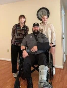 "In the early morning of April, 18th 2023, my husband was on his way home after a 12 hour shift. He was within miles of our house when I heard him come across the scanner calling into dispatch notifying them, he was hit and needed an ambulance. I jumped from my bed, dressed and sped to the accident scene. Needless to say, our world has been turned upside down as he has faced recovery and healing while also dealing with maintaining bills and general life. We were very blessed that a friend of mine almost immediately saw that we would have needs that would cause insurmountable stress and put me in touch with Christian’s Touch. I was very hesitant because, like most law enforcement families, we are used to reaching out and helping. Not asking others for help. My pride stood in the way. But Francine spoke to me several times and put that thought process aside and eased my concerns. From the very beginning, this family has been a Godsend to my husband and myself. Not only did they step in and help us stay on top of bills that would have fallen behind, but they have also been a friend, a sounding board, advisor, and a counselor. It has become blatantly obvious that sometimes God sends other people to stand in the fire with you. Francine and her family have done just that with my husband and myself. They continue to guide me and when I am feeling overwhelmed, Francine has been that calm voice. As my husband continues to heal so that he can return to active duty, they are there, responding to my texts and my questions and they are there helping us. There aren’t enough words in the English language to express my gratitude and thankfulness for not only this family but the young man that they honor in their quest to help law enforcement families."